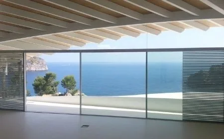 This unique architecturally designed house in Mallorca, pictured below, is a great example of this. The house was designed by Alberto Rubio and features slim framed sliding glass doors across all the beach-facing elevations.