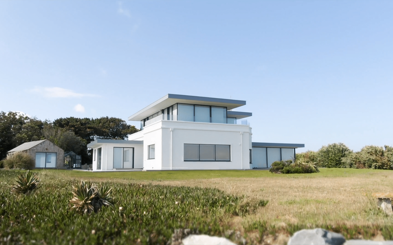 Combined with straight glass balustrades, the resulting terraced balconies create unique exterior designs, while also allowing the owners to fully immerse themselves in Guernsey’s coastal views.