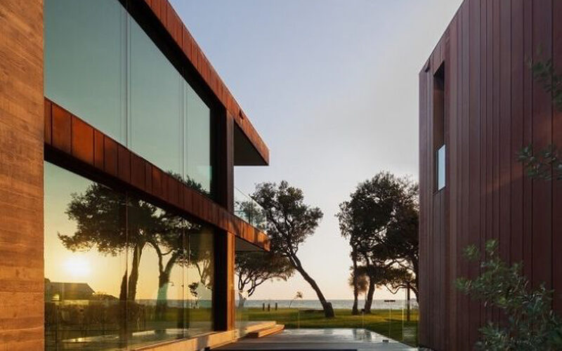 Sorrento House is a bespoke villa on the south coast of Australia. The large coastal house was designed with large slim framed sliding doors as one of the key architectural features.
